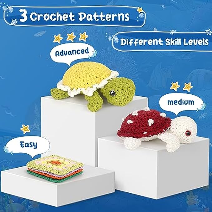 ❤️Complete Beginner Crochet Kit: This learn to crochet animal kit for adults or kids has everything you need to learn to crochet. Include crochet yarn, crochet hook, stuffing, needles, scissors, eyes, marker clasps. Complete crochet kit for beginners. This crochet kits come with more than just materials – step-by-step videos and detailed instructions(especially for beginners), you can jump right into your first crochet project! ❤️3-in-1 Beginner Crochet Books: Still hesitate because you haven't touched crochet? The ultimate guide to learn beginner knots & patterns from scratch. We've created three detailed tutorials designed to meet the needs of different levels and make it easy for everyone to get started. First is the "Crochet Basics" tutorial for beginners, including the “magic circle,” followed by the classic and practical "granny square" tutorial and finally our "creative turtle"! ❤️Time with Family: Crocheting can be an activity to do with your family. This animal crochet kit is suitable for beginners and can be enjoyed by both older members and children, through learning to crochet together, spend a pleasant time with your family and friends, you can give it to your family and friends, so that they will not only feel your heart and care, but also show your handmade talent and creativity. ❤️Learn a New Skill: If you want to learn to crochet animal, this beginner crochet kit is perfect for your first piece of work. A quick and easy DIY craft project for everyone to learn and make a sunflower turtle crochet set. Our beginner crochet kits for adults and kids makes it easy for you to master this hobby, this will be your best choice. Give it a whirl, Create these little stuffed cuties and share them with your family, friends, and lovers. ❤️Creative Crochet Gifts for Beginners: DIY this crochet knitting kit is a thoughtful gift for your friends and family who loves crochet. A gift to fit any occasion, especially Birthday, House Warming, Baby Shower, Weddings, Mother's Day or Thanksgiving Day, Christmas Day.