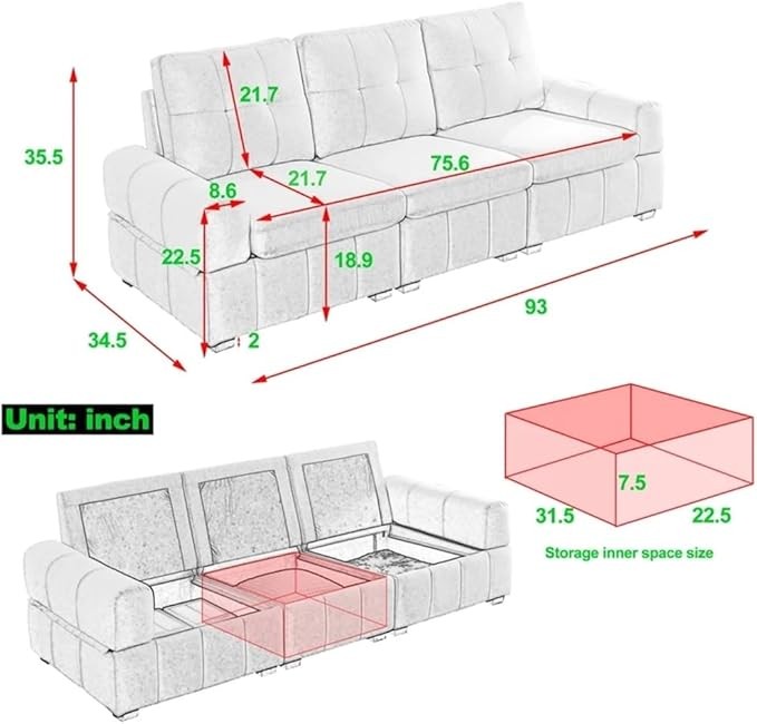 • Hidden storage space, there is a 31.5*22.5*7.5 inch storage space under each seat, take out the seat cushion and wooden support bar to put things, put back the seat cushion and wooden support bar after putting things in, you can sit down without affecting the beauty and use.