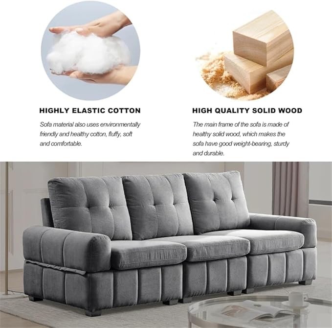 • Lounge sofa, tufted sleeper three-seater fabric sofa. generous, able to match perfectly with any decor theme, this sofa is for your living room, bedroom or office.