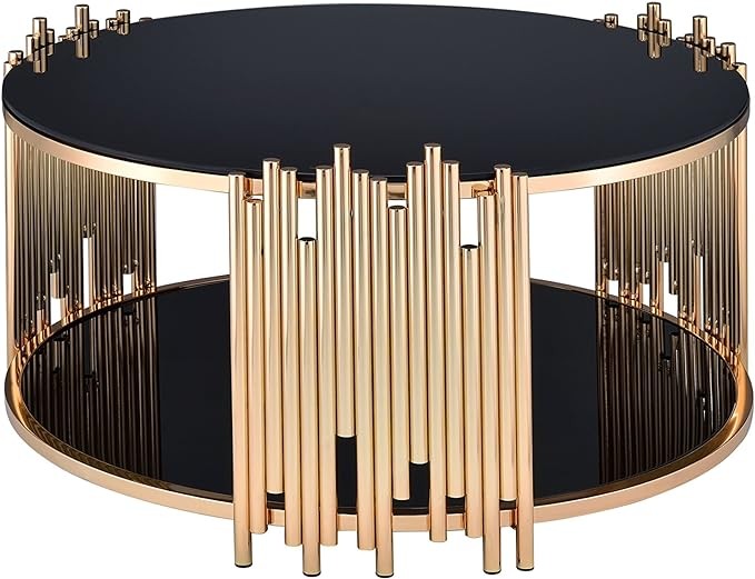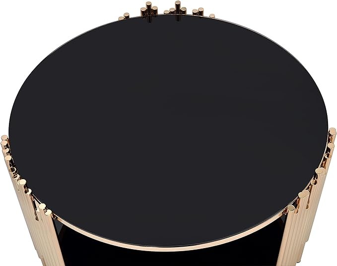 Acme Tanquin Modern Round Glass Top Coffee Table in Black and Gold