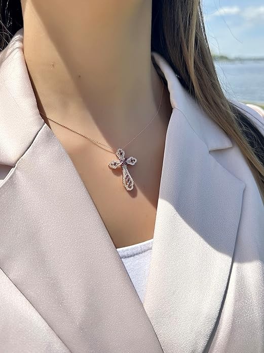 • Elegant Simplicity - This 14k rose gold cross pendant necklace is a stunning combination of loyalty and elegance. It is adorned with 1/2 carat of GH colored diamonds, whose sparkle is amplified by a clarity grade of VS2-SI1. Intersecting the diamond cross is a 1/4 carat of rubies, adding a bold color contrast. The pendant hangs from a 20-inch chain, secured with a secure lobster claw clasp. This necklace perfectly embodies spiritual sentiments and exudes exquisite beauty.