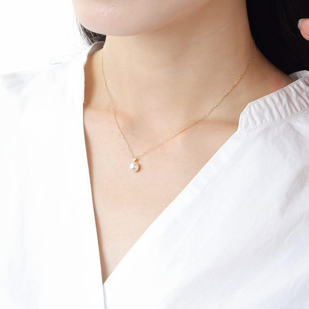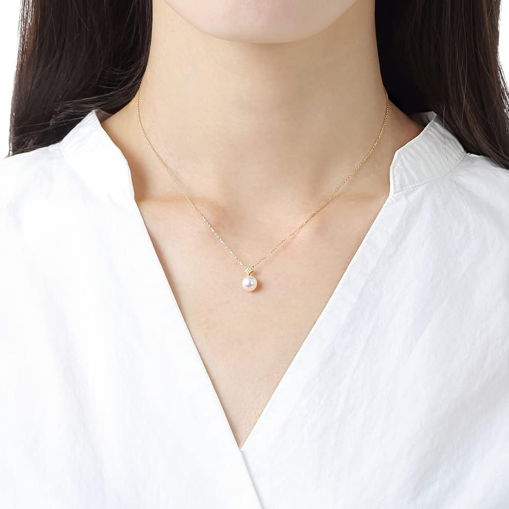 Japanese 6.5mm Akoya Cultured Pearl with Diamond Pendant Necklace for Women with 18K Yellow Gold | Classy Design Excellent Gift | Pearl Necklace