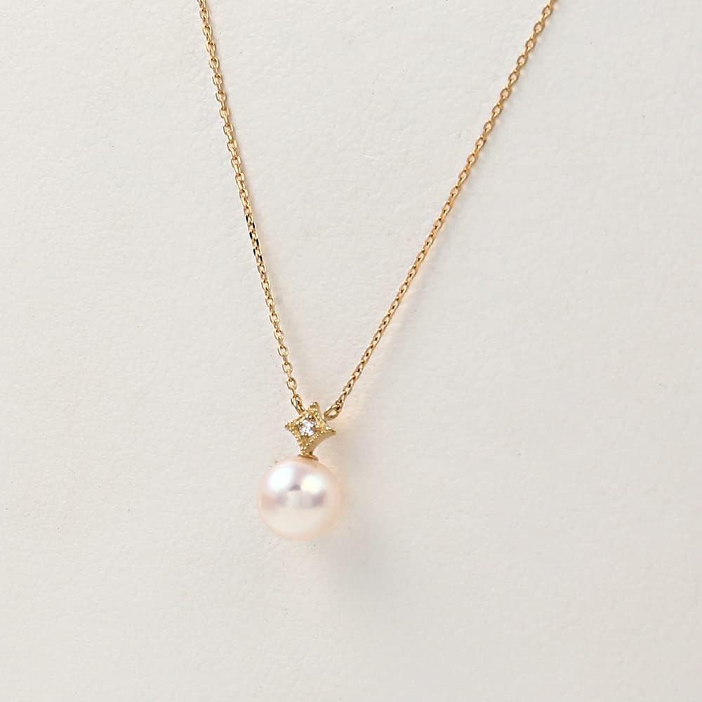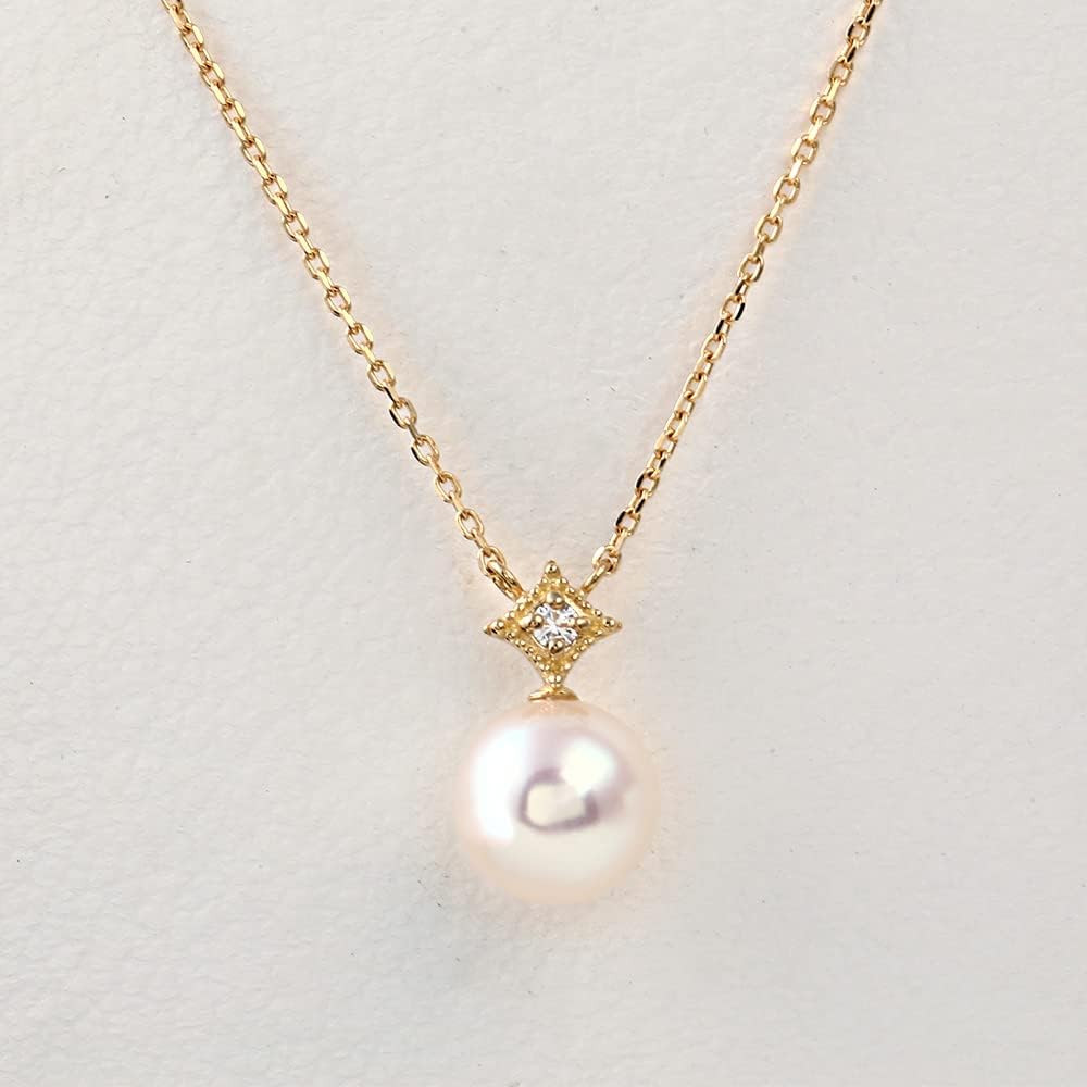 Material: Made of 18k yellow gold, a 6.5mm center Akoya pearl, and a 0.01ct diamond