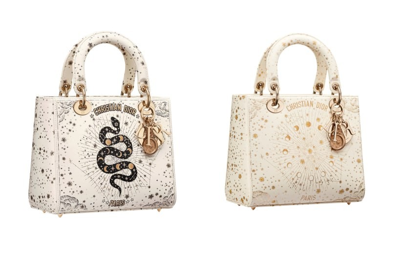 Medium Lady Dior Bag Latte Calfskin with Black and Gold-Tone Dior Astral Print
