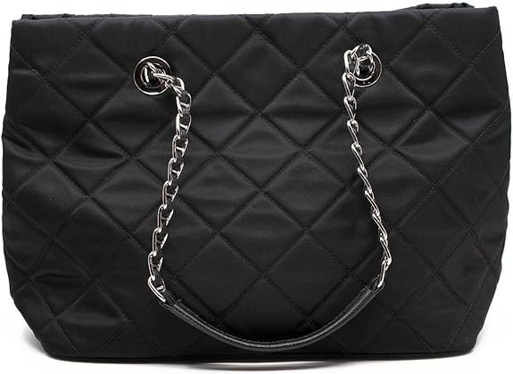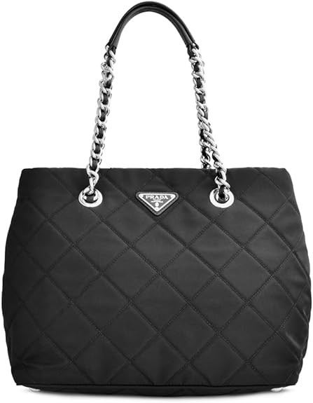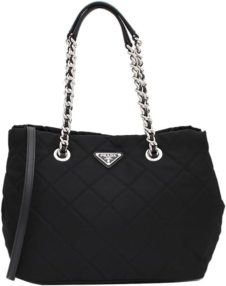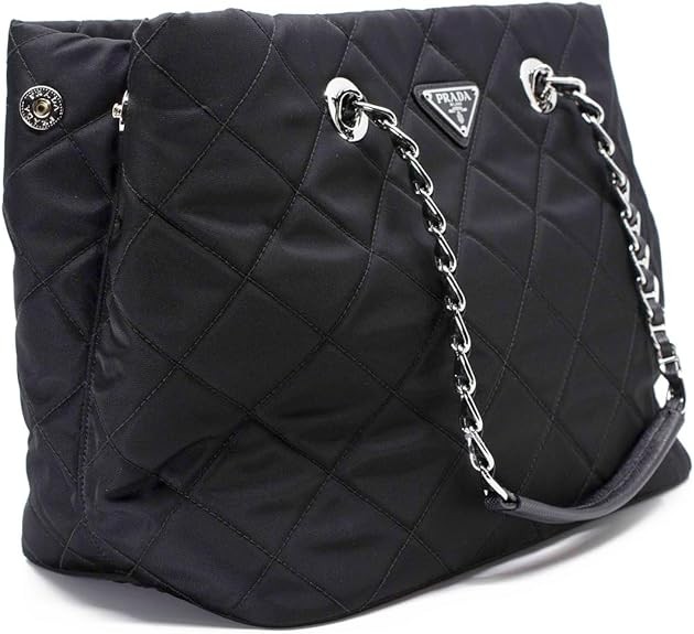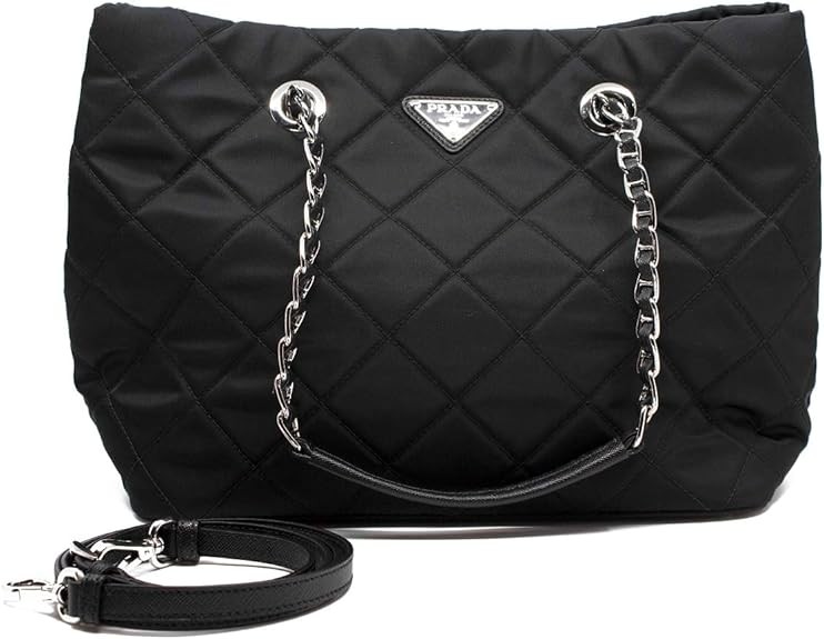 This Prada Nylon Bag is perfect for everyday use. The nylon is easy to care for and black goes with everything. There are two chain handles with leather shoulder pads for comfort as well as a detachable and adjustable leather strap.
